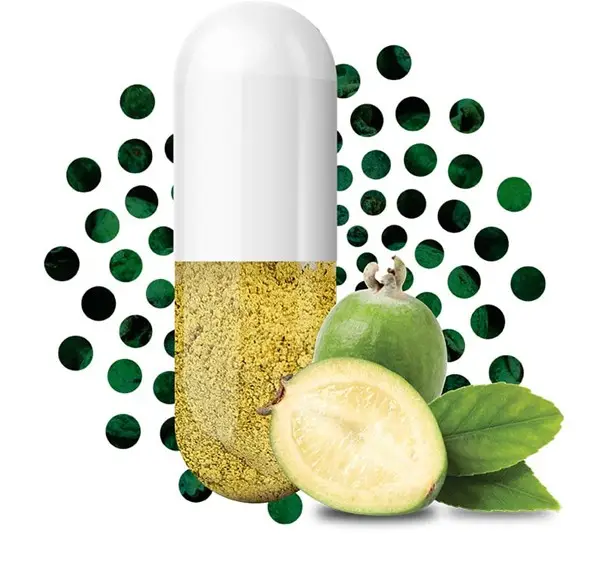 Feijoa (Acca sellowiana), également connu sous le nom de goyave ananas, est un fruit riche en nutriments reconnu pour son profil unique de composés bioactifs. C'est naturellement abondant en polyphénols, des fibres alimentaires et des vitamines essentielles comme la vitamine C, qui contribuent à son fort pouvoir antioxydant. Des études scientifiques ont montré que les polyphénols du feijoa aident à neutraliser les radicaux libres, à réduire le stress oxydatif et à soutenir la santé cellulaire. De plus, la teneur en fibres solubles du fruit joue un rôle dans moduler le microbiote intestinal et soutenir le bien-être digestif. Ces propriétés combinées font du feijoa un ingrédient prometteur pour les compléments alimentaires fonctionnels visant à favoriser la santé et la vitalité globales.
